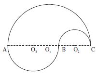 On considère un demi-cercle de diamètre AC et de centre $O_1$. De part et d’autre du diamètre AC on trace deux demi-cercles de diamètre $AO_1$ et $O_1C$ respectivement.
