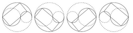 - Classe 1 : Leurs quatre sommets sont situés sur un seul cercle. Ils sont au nombre de trois et sont homothétiques.