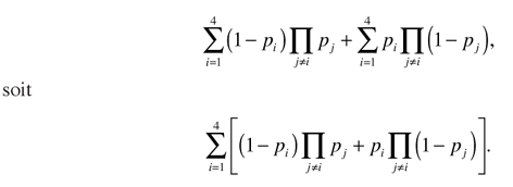 En faisant l’hypothèse qu’une probabilité d’apparition de F, soit $p_i$ (i = 1, 2, 3, 4) est