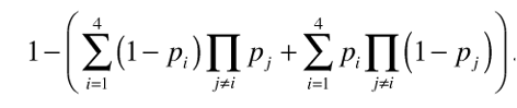 $P(p)= 1-4 p^{3}(1-p) -4 (1-p)^{3}p$