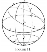 - Par définition, les grands cercles sont les plus grands cercles que l’on puisse tracer sur la sphère. Dans la figure 11, donner trois grands cercles. Donner d’autres cercles qui ne sont pas des grands cercles.