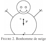 Exercice préliminaire 1 : vecteur force. En physique on représente les forces par des vecteurs. Par exemple, dans la figure 2 le poids d’un bonhomme de neige est la force $\vec p$ de la pesanteur exercée par la Terre sur le bonhomme. La direction de ce vecteur est verticale. Ce vecteur est dirigé de haut en bas. Le bonhomme de neige repose sur le sol et il est immobile. La force de pesanteur $\vec p$ est compensée par la force de réaction $\vec r$ du sol. On traduit cette immobilité par la relation $\vec p + \vec r=\vec 0$ .