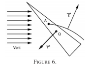 Exercice 4 : navigation au près, figure 6. Les marins ont développé au cours de l’histoire l’usage de bateaux ayant une quille. Dans la modélisation retenue, la voile et le bateau forment un système rigide. Le point Q représente la quille. La quille empêche toute rotation. On ignore les effets verticaux : le vent est horizontal, et le