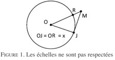 Problème. Dans la figure 1, le point J représente Julieta. Le point R représente Roméo. Le point M représente le sommet du mât du bateau dans lequel se trouve Roméo. Le mât mesure dix mètres, autrement dit RM = 10 m. On note x = OJ = OR le rayon de la Terre. Rappelons que dans le devoir maison, nous avons trouvé JR ≃10 km.
