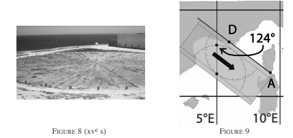 Les marins de l’Antiquité connaissaient l’Étoile polaire, qui leur donnait le Nord. Pour s’orienter ils utilisaient une rose des vents. Par la suite de plus en plus de branches ont été ajoutées, cf. figure 8. Puis les roses des vents sont apparues sur les cartes marines [11]. Au cours de la Renaissance, on a substitué à la rose des vents un compas circulaire gradué en degrés de 0° à 360°.