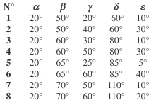 $(\alpha, \beta, \gamma, \delta, \varepsilon)$= (40°, 55°, 40°, 75°, 20°).