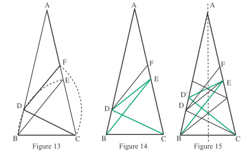 Son auteur, Machado, fait une investigation systématique de telles configurations au moyen d’un logiciel, et donne ainsi trente six problèmes différents, correspondant à autant de valeurs différentes des angles du triangle isocèle ABC et des angles $\widehat{CDE}$ et $\widehat{DEB}$.